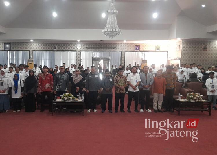 Anggota Komisi IX DPR RI dari Fraksi Partai Keadilan Sejahtera (PKS), Muh Haris, berfoto bersama peserta sosialisasi program MBG di Kabupaten Kendal, Minggu, 8 Februari 2026. (Anik Kustiani/Lingkarjateng.id)