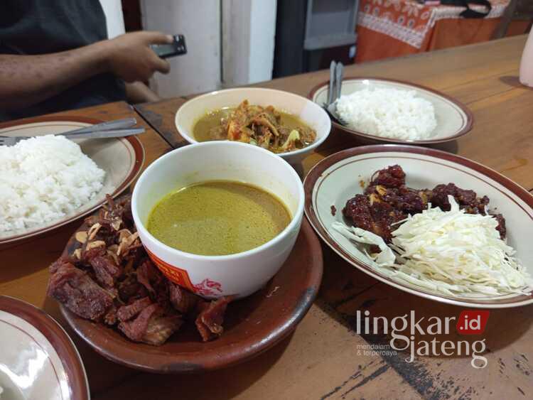 “Itu menu signature kami. Gulai goreng bisa dibilang belum ada yang lain di Salatiga. Kuah gule dan dagingnya digoreng terpisah, jadi dapat rasa gule tapi sensasi dagingnya renyah,” terang Roni.