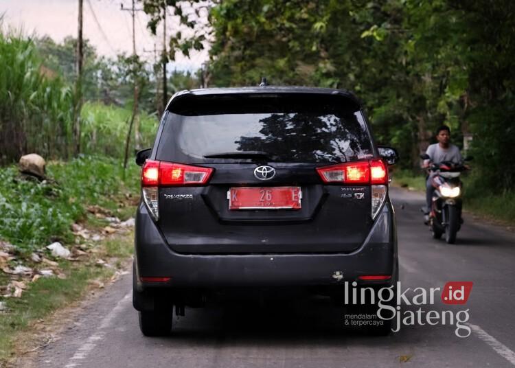 Mobil dinas yang dipakai Plt Sekwan Blora, Agus Listiyono, untuk kepentingan pribadi saat momen lebaran lalu. (Eko Wicaksono/Lingkarjateng.id)