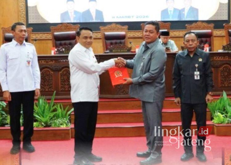 Penyerahan hasil reses kepada Plt Bupati Pati Risma Ardhi Chandra melalui rapat paripurna, Rabu 4 Februari 2026. (Lingkarjateng.id)