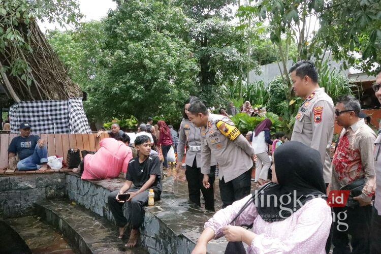 Kapolres juga mengingatkan pengunjung agar selalu memperhatikan aspek keselamatan, khususnya saat berada di area yang berpotensi licin atau rawan kecelakaan.