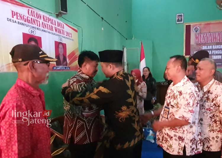 PATI, Lingkarjateng.id – Sunaryo akhirnya terpilih menjadi Kades Banyutowo, Kecamatan Dukuhseti, Kabupaten Pati dalam Pilkades Pengganti Antar Waktu (PAW) yang digelar secara serentak, pada Selasa, 18 Juli 2023. Ia berhasil menang mutlak atas rivalnya, Sri Hartatik yang tak lain adalah istrinya sendiri.
