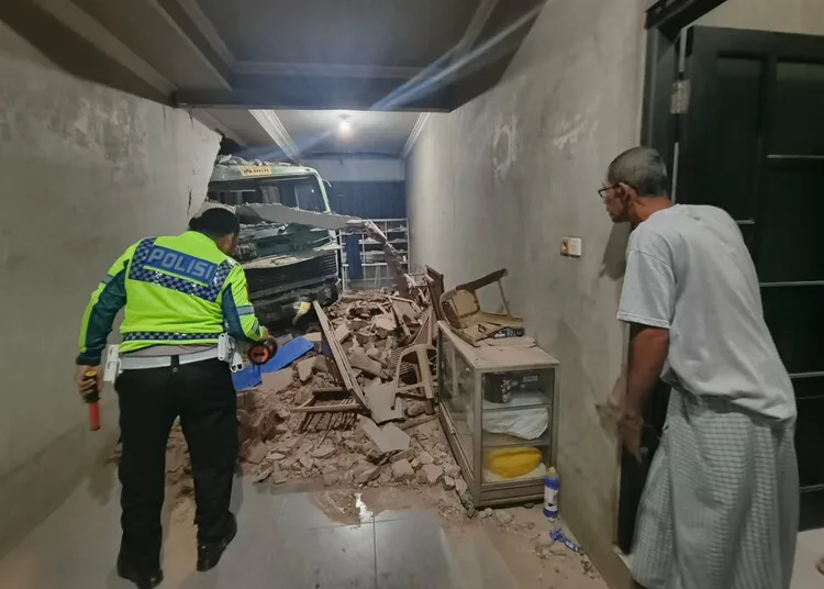 Pecah Ban, Truk Kontainer Tabrak Rumah Warga di Kalinyamatan Jepara