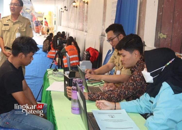 Sejumlah pencari kerja saat melamar pekerjaan di bursa kerja yang diselenggarakan Pemkot Salatiga, beberapa waktu lalu. (Dok.Prokompim Setda Salatiga/Lingkarjateng.id)