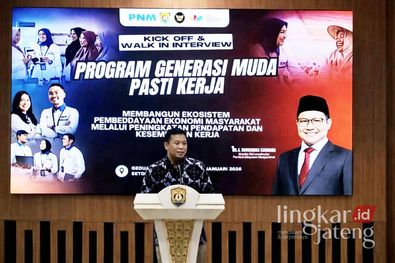 Salah satu langkah yang dilakukan adalah melalui peluncuran program Generasi Muda Pasti Kerja yang dikemas dengan kegiatan Kick Off & Walk In Interview dengan menggandeng PT Permodalan Nasional Madani (PNM) di Gedung Abdi Praja Setda Kendal, Kamis 29 Januari 2026.