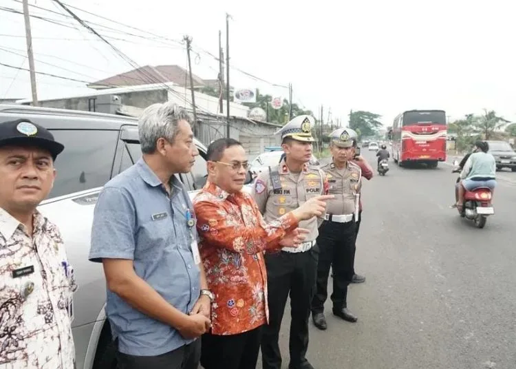 Bupati Pati, Sudewo, beserta jajarannya saat meninjau perbaikan Jalan Pati-Kudus. (Lingkar News Network)