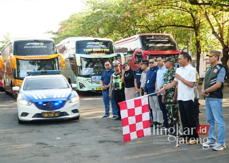 Upacara pelepasan armada bus dipimpin oleh Penjabat Sekretaris Daerah (Pj. Sekda) Kabupaten Pati, Teguh Widyatmoko.
