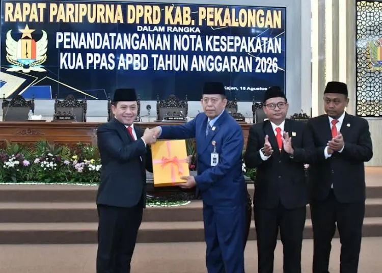 PEKALONGAN, Lingkarjateng.id – Pemerintah Kabupaten (Pemkab) Pekalongan bersama DPRD Kabupaten Pekalongan resmi menyepakati Kebijakan Umum Anggaran dan Prioritas Plafon Anggaran Sementara (KUA-PPAS) APBD Tahun Anggaran 2026. Kesepakatan tersebut ditandai dengan penandatanganan dokumen oleh Wakil Bupati Pekalongan Sukirman dan Ketua DPRD Abdul Munir dalam rapat paripurna di ruang rapat DPRD, Jumat, 15 Agustus 2025.
