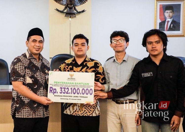 Pemerintah melalui Badan Amil Zakat Nasional (Baznas) Jateng menyalurkan bantuan biaya tempat tinggal selama tiga bulan kepada 162 mahasiswa dengan nilai total Rp332.100.000. Dari jumlah tersebut, setiap mahasiswa sedikitnya akan menerima Rp1.950.000.