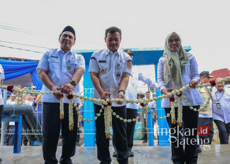 Gubernur Jateng, Ahmad Luthfi bersama Wagub Taj Yasin serta Bupati Demak Eisti’anah saat prosesi pengguntingan pita sebagai tanda diresmikannya PATS di wilayah Sayung Demak, Rabu, 31 Desember 2025. (M Burhanuddin Aslam/Lingkarjateng.id)