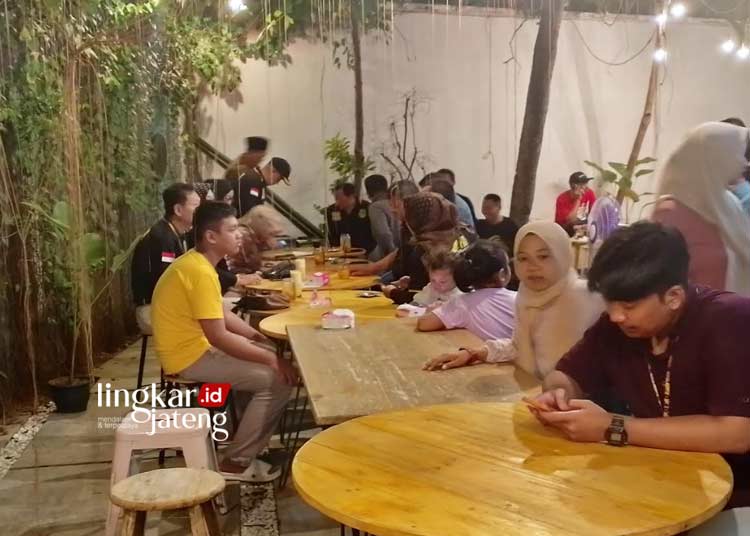 HALAL BIHALAL: Puskom Pati dalam agenda konsolidasi dan halal bihalal di Paragraf Cafe, Sidokerto, Kabupaten Pati, Sabtu, 13 April 2024 malam. (Arif Febriyanto/Lingkarjateng.id)