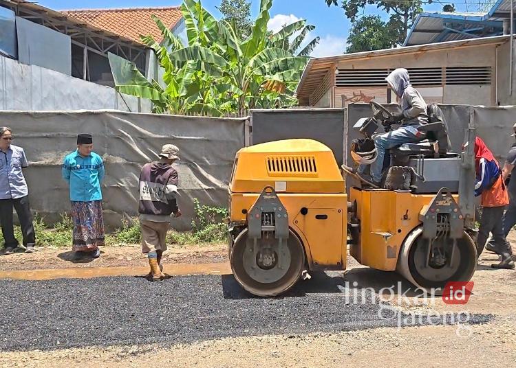Plt Bupati Pekalongan, Sukirman, memantau langsung proses perbaikan dan pengaspalan Jalan Raya Watusalam, Kecamatan Buaran, Kabupaten Pekalongan, Sabtu, 14 Maret 2026. (Fahri Akbar/Lingkarjateng.id)