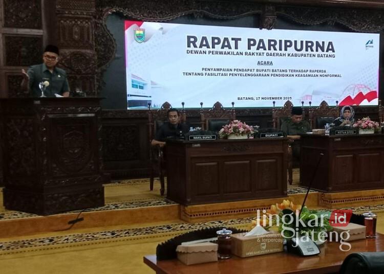 Hal itu ditegaskan Bupati Batang, M. Faiz Kurniawan, saat menyatakan persetujuan terhadap Rancangan Peraturan Daerah (Raperda) Fasilitasi Penyelenggaraan Pendidikan Keagamaan Nonformal dalam rapat paripurna di Gedung DPRD Batang, Senin, 17 November 2025.