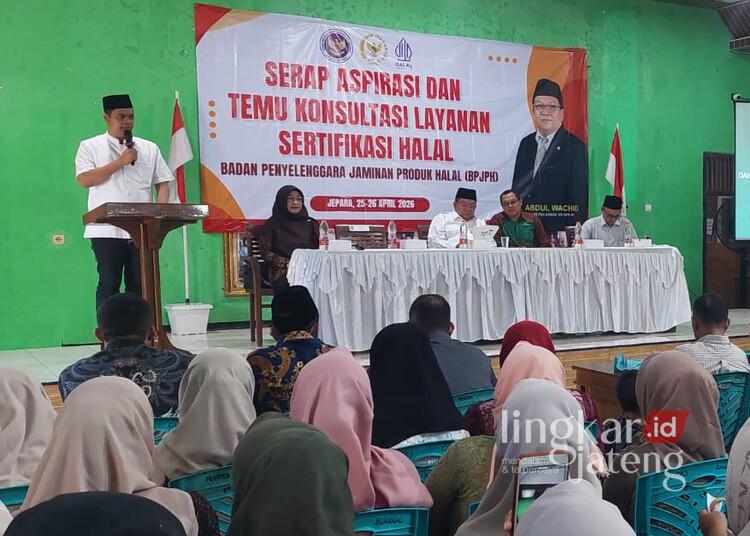 JEPARA, Lingkarjateng.id – Sebanyak 230 pelaku usaha mikro, kecil, dan menengah (UMKM) di Desa Suwawal, Kecamatan Mlonggo, mengikuti program pendampingan percepatan sertifikasi halal untuk produk makanan dan minuman, Sabtu, 25 April 2026.
