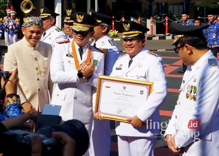 Penghargaan bergengsi tersebut diterima langsung oleh Wali Kota Salatiga Robby Hernawan saat menghadiri Upacara Peringatan Hari Otonomi Daerah ke-XXX Tahun 2026 di Plaza Kementerian Dalam Negeri, Jakarta, Senin, 27 April 2026. Dengan capaian ini, Kota Salatiga semakin mempertegas posisinya sebagai salah satu daerah dengan kinerja pemerintahan terbaik di Indonesia.
