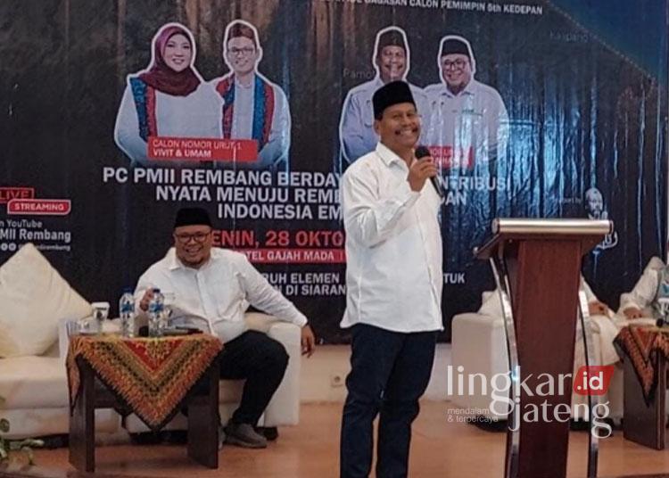 REMBANG, Lingkarjateng.id – Dalam sebuah diskusi terbuka yang digagas oleh PMII Rembang bertajuk Mimbar Rakyat, pasangan calon nomor urut 2 Harno-Hanies menyampaikan visi dan misinya dengan lugas dan menyentuh hati masyarakat.