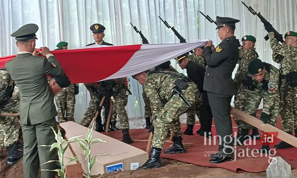 Magelang (lingkarjateng.id) – Gugur dalam tugas perdamaian dunia di Lebanon, Jenazah Serka Anumerta Muhammad Nur Ichwan dimakamkan di Taman Makam Pahlawan (TMP) Giri Dharmoloyo II Cawang, Magelang, Minggu (5/4) pagi ini. Pemakaman dilakukan secara militer.