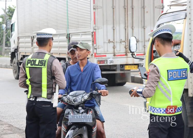 Selain pelanggaran melawan arus, petugas juga menindak pengendara yang tidak menggunakan helm berstandar SNI serta pengendara yang berboncengan lebih dari dua orang.