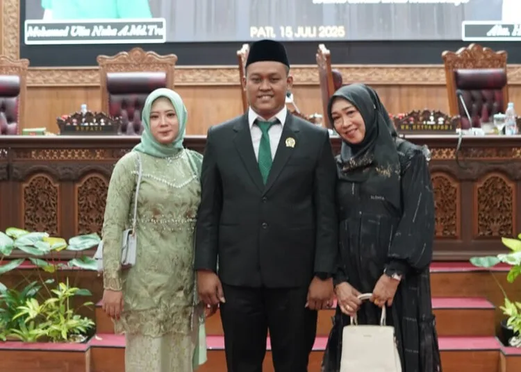 Mohamad Ulin Nuha bersama istri dan ibunya usai dilantik menjadi Anggota Komisi C Dewan Perwakilan Rakyat Daerah (DPRD) Kabupaten Pati pada Selasa, 15 Juli 2025. (Dok. Lingkar Network/Lingkarjateng.id)