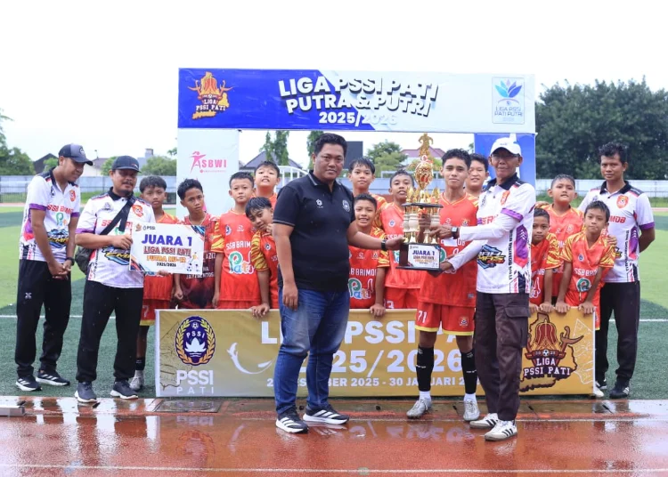 PATI, Lingkarjateng.id – SSB Brimob Pati keluar sebagai juara LIGA 1 PSSI Pati Putra U-12 2026 setelah menaklukkan SSB Singonarum Pati melalui adu penalti pada partai final yang digelar di Stadion Joyo Kusumo, Pati, Minggu (11/1/2026).