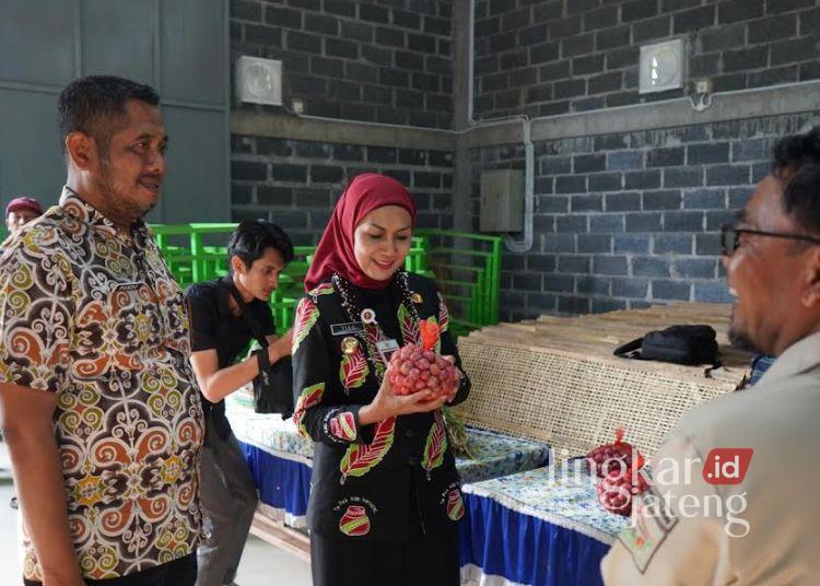 Bupati Kendal, Dyah Kartika Permanasari saat mengunjungi bangsal bawang merah di Desa Krompakan Kecamatan Gemuh, Kendal. (Arvian Maulana/Lingkarjateng.id)