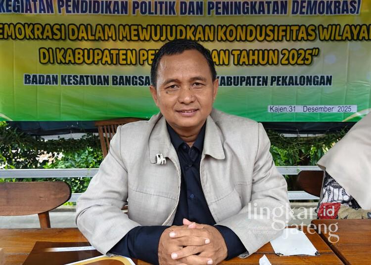Wakil Ketua DPRD Kabupaten Pekalongan, H. Sumar Rosul, S.IP., M.AP., saat memberikan keterangan kepada wartawan usai kegiatan Pendidikan Politik dan Peningkatan Demokrasi di Kajen, Kabupaten Pekalongan, Rabu, 31 Desember 2025. (Fahri Akbar/Lingkarjateng.id)