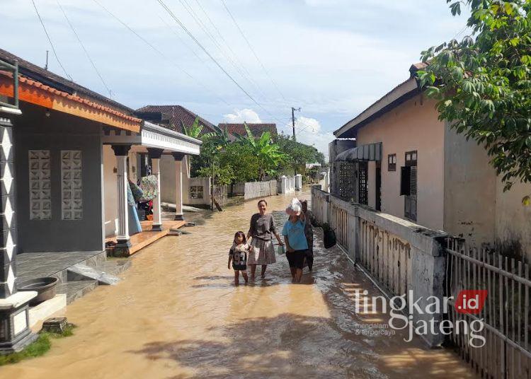 Banjir di wilayah Kecamatan Juwana, Kabubpaten Pati masuk ke area permukiman warga pada Kamis, 15 Januari 2026. (Lingkarnews Network)