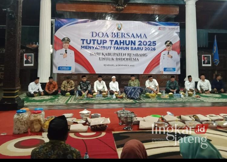REMBANG, Lingkarjateng.id – Pemerintah Kabupaten (Pemkab) Rembang menggelar Doa Bersama Tutup Tahun 2025 dan Menyambut 2026 di Pendopo Museum Kartini, Rabu malam, 31 Desember 2025.