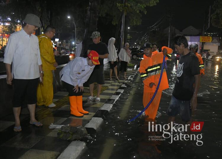 Dalam tinjauannya di lapangan, Agustina mendatangi langsung Rumah Pompa Kampung Kali dan Rumah Pompa Berok. Ia juga mengecek kondisi banjir di Bundaran Bubakan.
