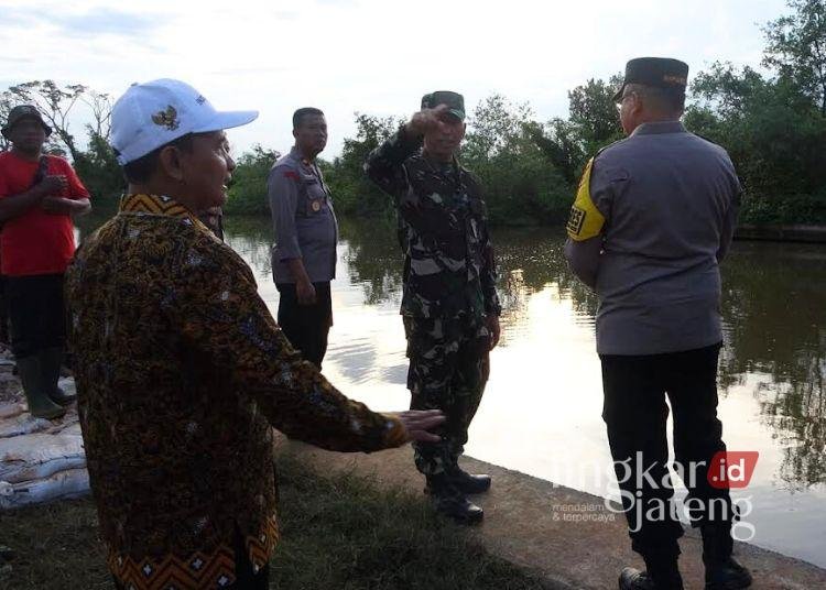 Wakil Ketua DPRD Kabupaten Pekalongan H. Sumar Rosul, S.IP., M.AP., bersama unsur Forkopimda meninjau lokasi tanggul jebol Sungai Silempeng di Desa Depok, Siwalan, Selasa, 18 November 2025. (Fahri Akbar/Lingkarjateng.id)