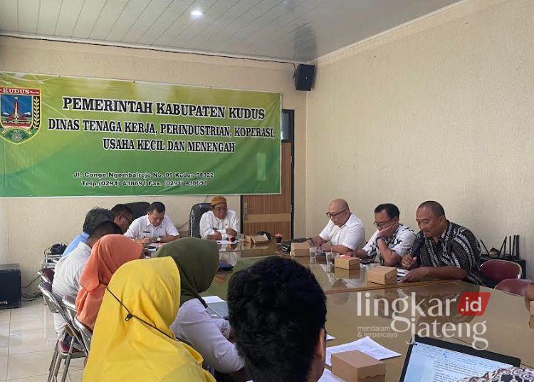 Hal itu mengemuka dalam rapat Dewan Pengupahan yang digelar di ruang rapat Dinas Tenaga Kerja, Perindustrian, Koperasi, dan UKM (Disnakerperinkop UKM) Kabupaten Kudus, Kamis, 18 Desember 2025.
