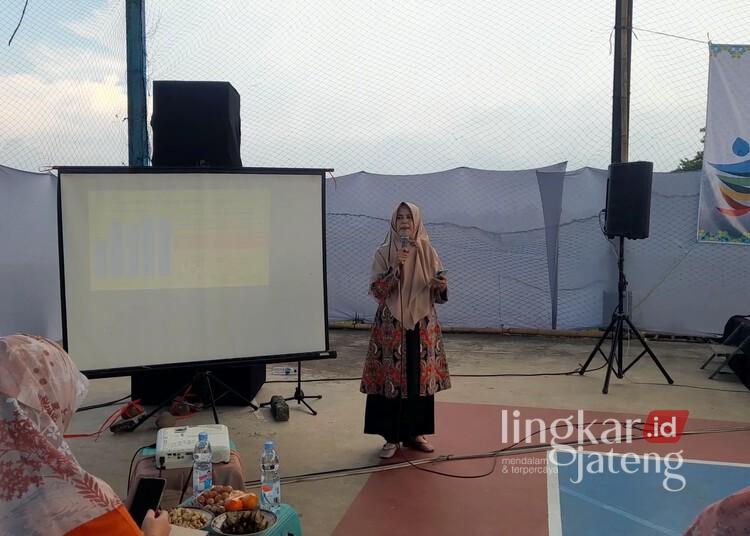 Kabid Pelayanan Kesehatan Dinkes Kendal, Anita Dianawati, saat memberikan edukasi kepada masyarakat dalam kegaitan sosialisasi terkait TBC, Jumat, 3 April 2026. (Anik Kustiani/Lingkarjateng.id)