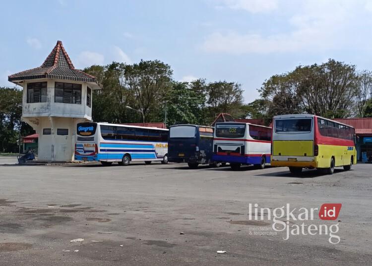 Bus menunggu penumpang di Terminal Purwodadi, Kabupaten Grobogan. (Ahmad Abaro/Lingkarjateng.id)