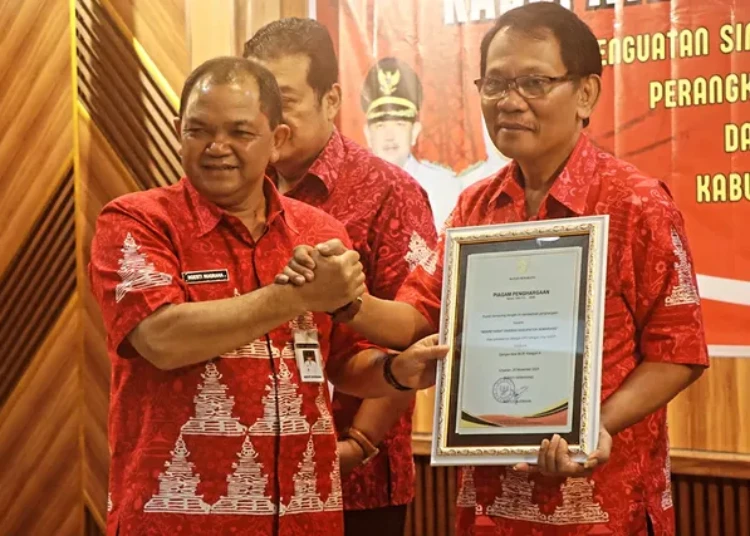 Bupati Semarang, Ngesti Nugraha, berkesempatan menyerahkan penghargaan kepada tiga OPD Pemerintah Kabupaten Semarang terbaik dalam pelaksanaan Sistem Akuntabilitas Kinerja I Instansi Pemerintahan (SAKIP) dalam acara Gelar Pengawasan Daerah Tahun 2025 di Ruang Pertemuan Balai Bahasa Provinsi Jawa Tengah, di Ungaran, Kamis, 20 November 2025. (Diskominfo Kab. Semarang/Lingkarjateng.id)