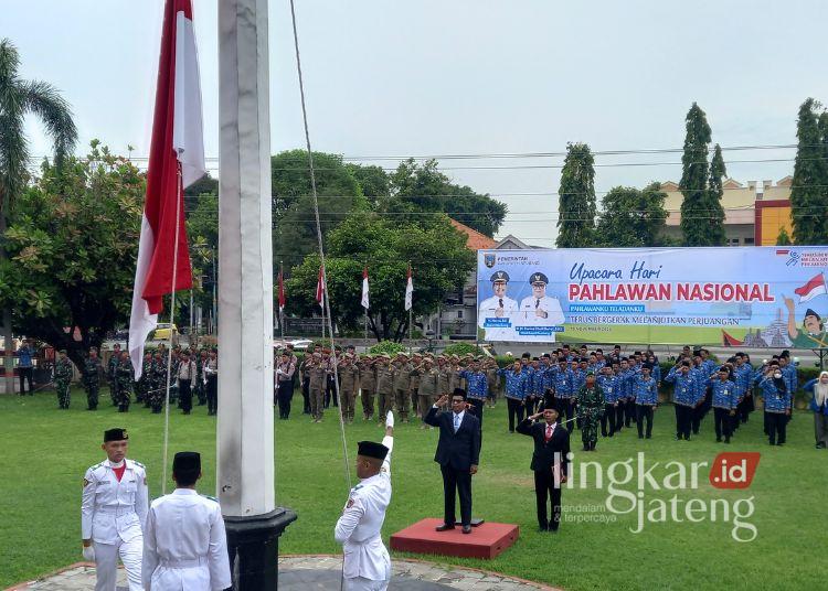 Bupati Rembang, Harno, bertindak sebagai inspektur upacara membacakan amanat Menteri Sosial yang menekankan pentingnya meneladani nilai perjuangan para pahlawan bangsa.