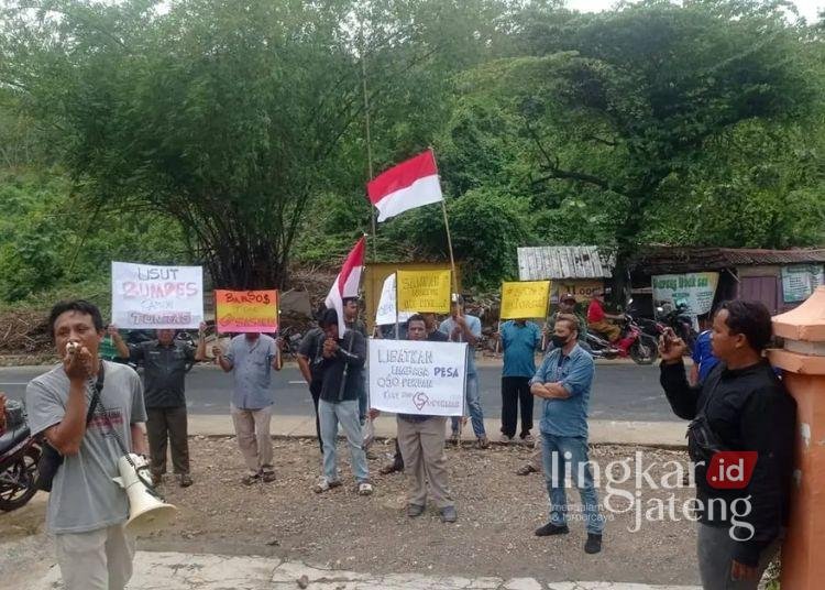 PATI, Lingkarjateng.id – Masyarakat Desa/Kecamatan Sukolilo, Kabupaten Pati demo di kantor desa setempat pada Kamis, 11 Desember 2025. Massa menuntut transparansi penggunaan dana desa (DD).