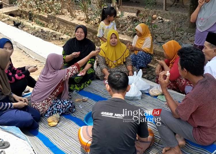Dalam kesempatan itu, warga berbondong-bondong membawa makanan, baik berupa nasi, sayur dan lauk pauk, hingga jajanan pasar. Kemudian, didoakan serta dimakan bersama-sama.